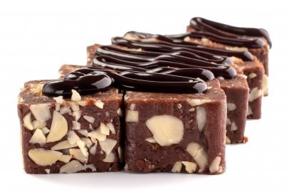Печенье, сгущенное молоко, сливочное масло, какао, банан, лепестки миндаля, шоколадный топпинг,