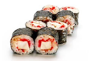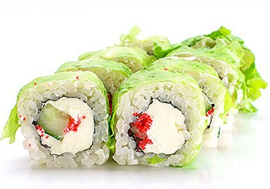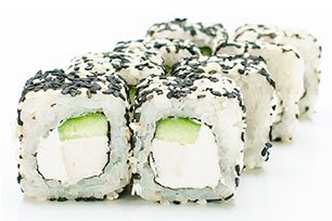 Кунжут, Лист салата, Нори, Огурцы, Перец болгарский , Помидор, Рис, Сыр сливочный, Дайкон,
