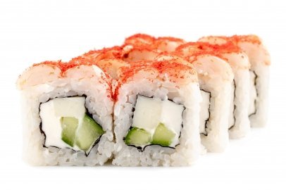 Креветки, Моцарелла, Нори, Огурцы, Рис, Сыр сливочный, Копченая паприка,