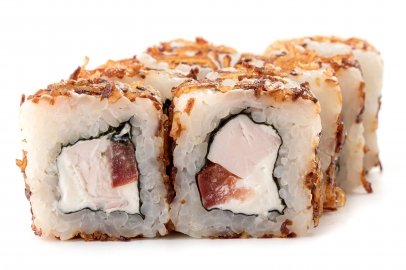 Курица, Нори, Помидор, Рис, Сухари панировочные, Сыр сливочный, Соус Фирменный,
