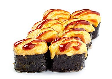 Курица, Нори, Помидор, Рис, Сухари панировочные, Сыр сливочный, Соус Фирменный,