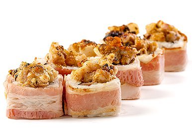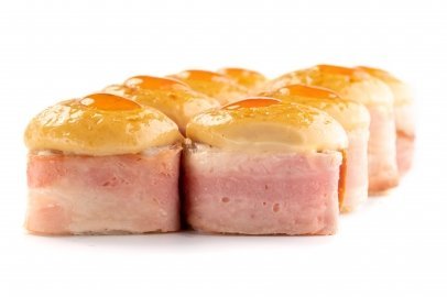 Бекон , Нори, Огурцы, Пекинская капуста, Помидор, Рис, Спайси соус, Морской коктейль,